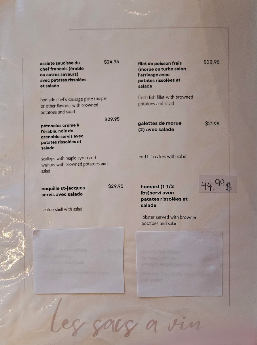 Welcome to Bistro Les Sacs Vin, a charming eatery tucked away in Percé, Quebec, at 50 Rte 132. This delightful spot is known for its warm, homey ambiance and welcoming service, making it a hidden gem favored by locals. The menu, while limited, features freshly caught seafood, including lobster from a live tank and perfectly prepared scallops and pasta.